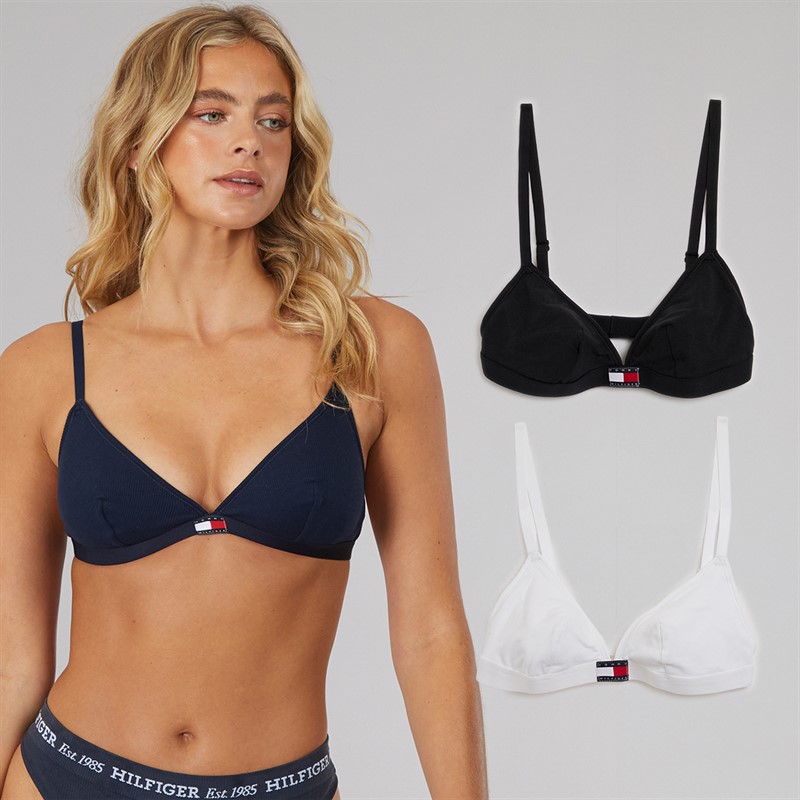 Tommy Hilfiger Womens Three Pack Triangle Bras Black/Navy Rib/White