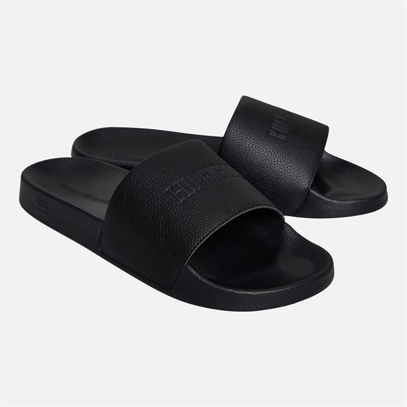 Tommy Hilfiger Mens Embossed Logo Sliders Black