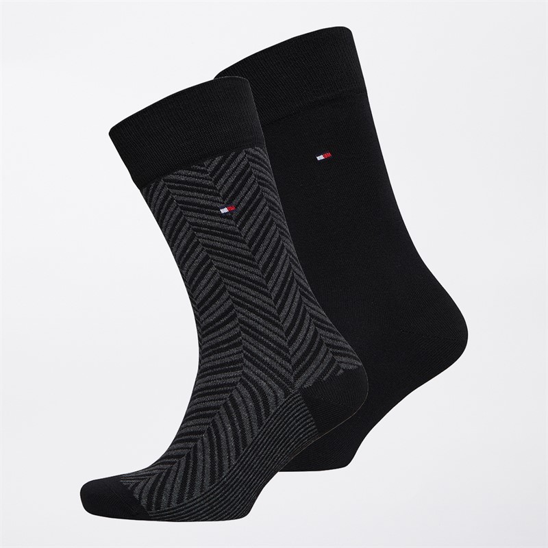 Tommy Hilfiger Mens Irregular Herringbone Two Pack Socks Black