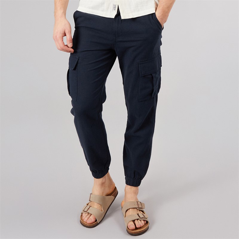 Tokyo Laundry Mens Idas Linen Cargo Trousers Navy