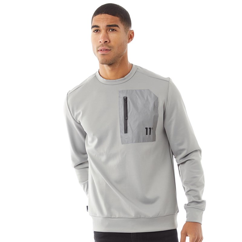 11 Degrees Mens Contrast Pocket Poly Long Sleeve Top Silver/Silver Reflective