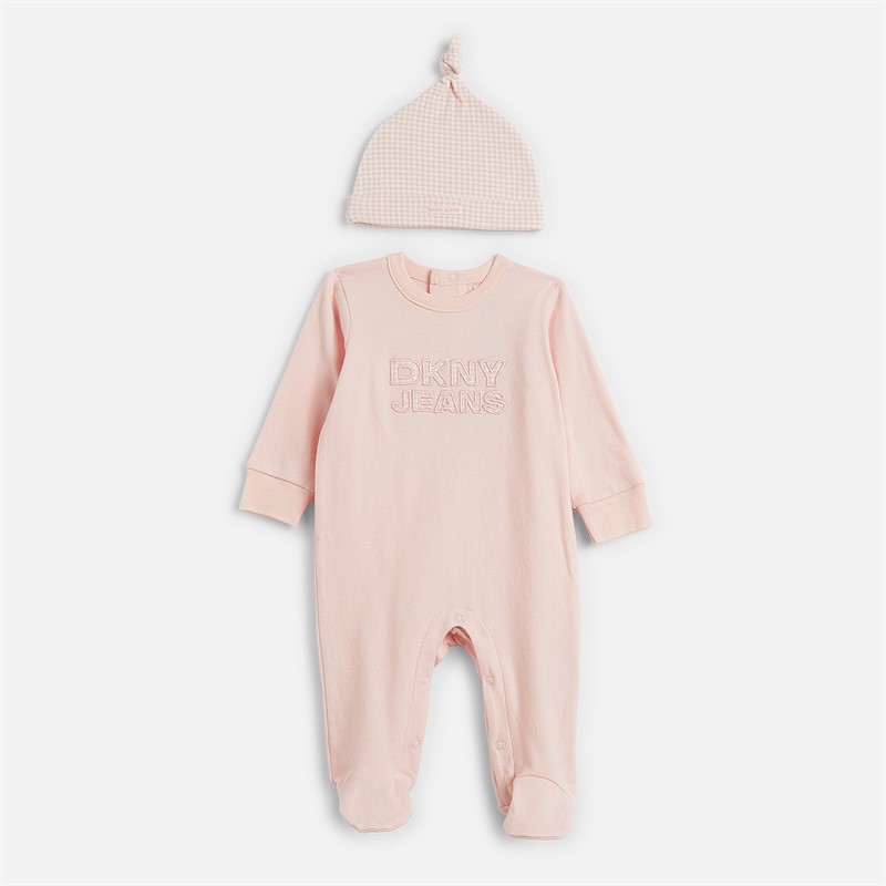 DKNY Jeans Girls Sleepsuit And Hat Set Pink
