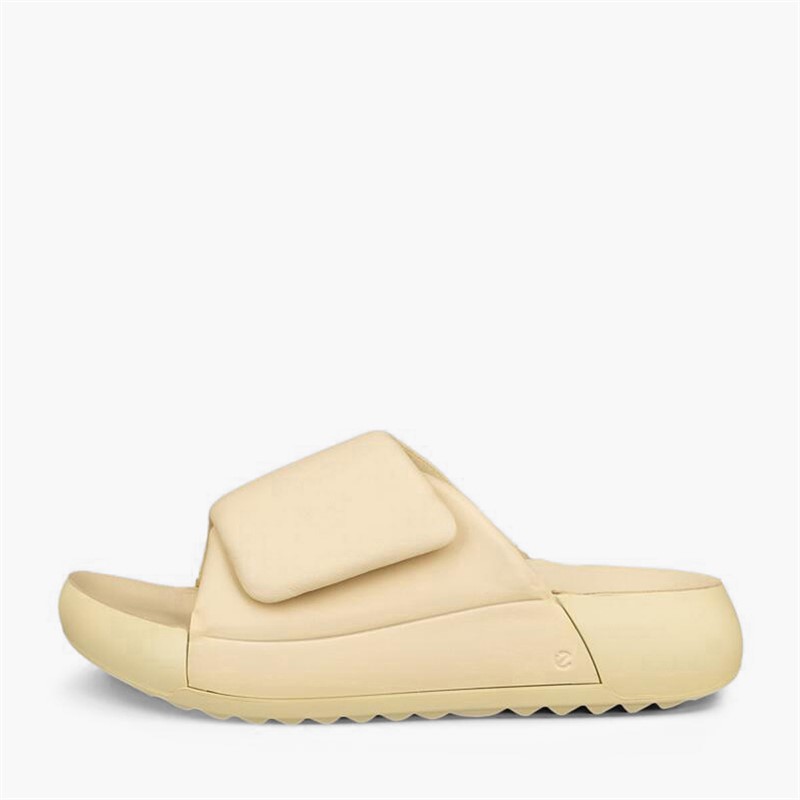 ECCO Womens Cozmo Leather Strap Sliders Straw
